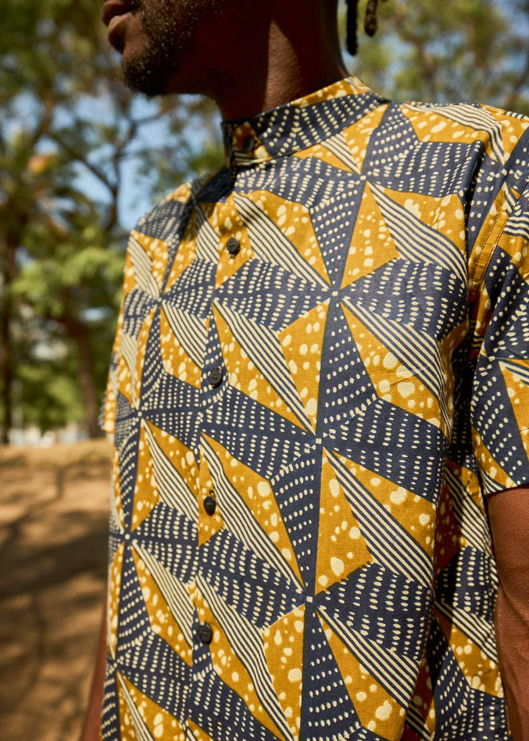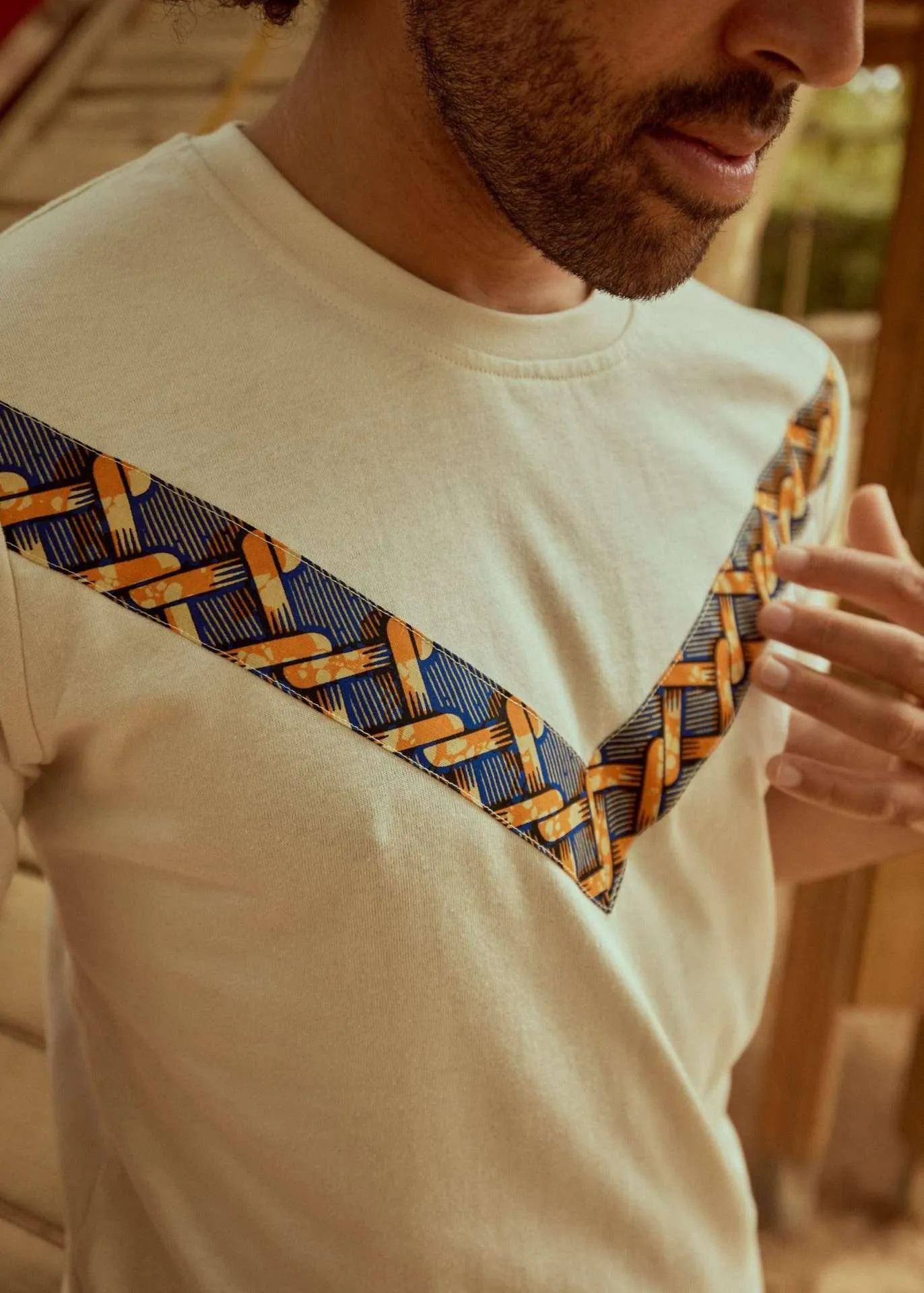 Cuello y bolsillo en tejido wax (africano) 100% algodón