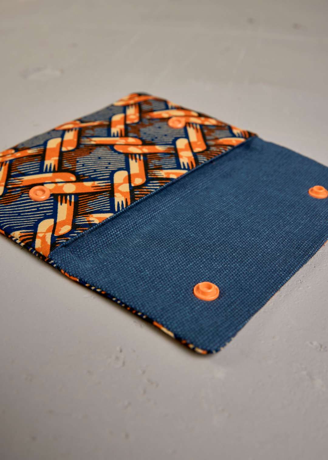 Funda acolchada para ordenador portátil. Exterior confeccionado en sarga algodón y wax algodón. Forro interior en algodón wax 100%. Bolsillo interior para guardar cargador o agenda. Medidas 40*29cms